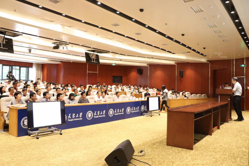 “‘I try to understand something…’,当我与国外学者交流时,对方这样介绍自己的研究方向。而我还在大言不惭地说什么‘I study…’,自此之后我知道自己境界上的差距,对谦虚有更好的理解?!敝泄蒲г涸菏肯匣诒毖笫Ы蔡蒙险庋霰ǜ嫣饽俊袄斫馐А钡挠衫?。他挺拔高瘦,讲话简单、直接,还带点冷幽默。2018年6月13日下午,这位有点不一样的院士吸引了大批观众,汇集在天津大学行政服务中心报告厅。