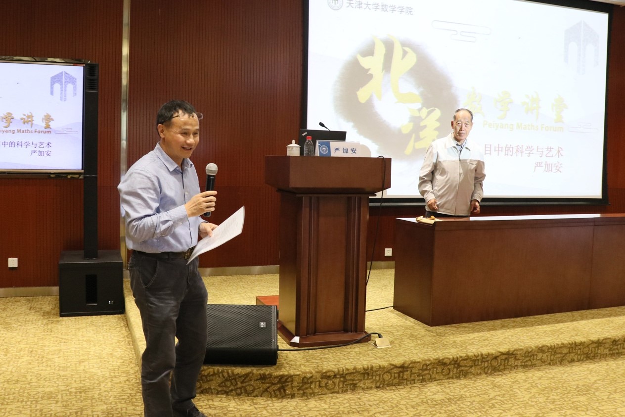 中国科学院院士严加安做客北洋数学讲堂,阐述何为“大道至简,大美天成”。2018年9月27日,天津大学数学学院邀请严加安院士为师生讲述心目中的科学与艺术。活动在天津大学北洋园校区行政楼一层报告厅举办,由数学学院院长孙笑涛主持。